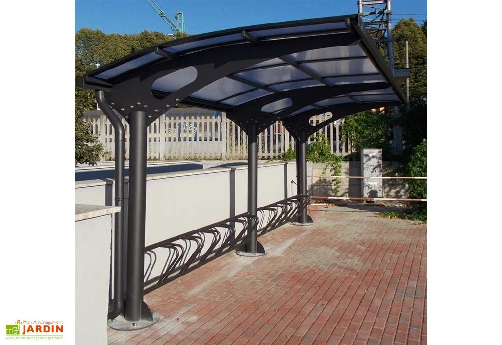 Spécialement conçu pour les lieux publics et autres collectivités, l’abri à vélo Larus de chez Helios mesure 5,60 m de long sur 2,50 m de profondeur et 2,49 m de haut. Il comprend deux racks qui pourront accueillir jusqu’à 12 vélos et se chargera de protéger ces derniers des intempéries, et notamment de la pluie ou de la grêle. Sa toiture pourra par ailleurs supporter une charge de neige maximale de 340 kg/m².
