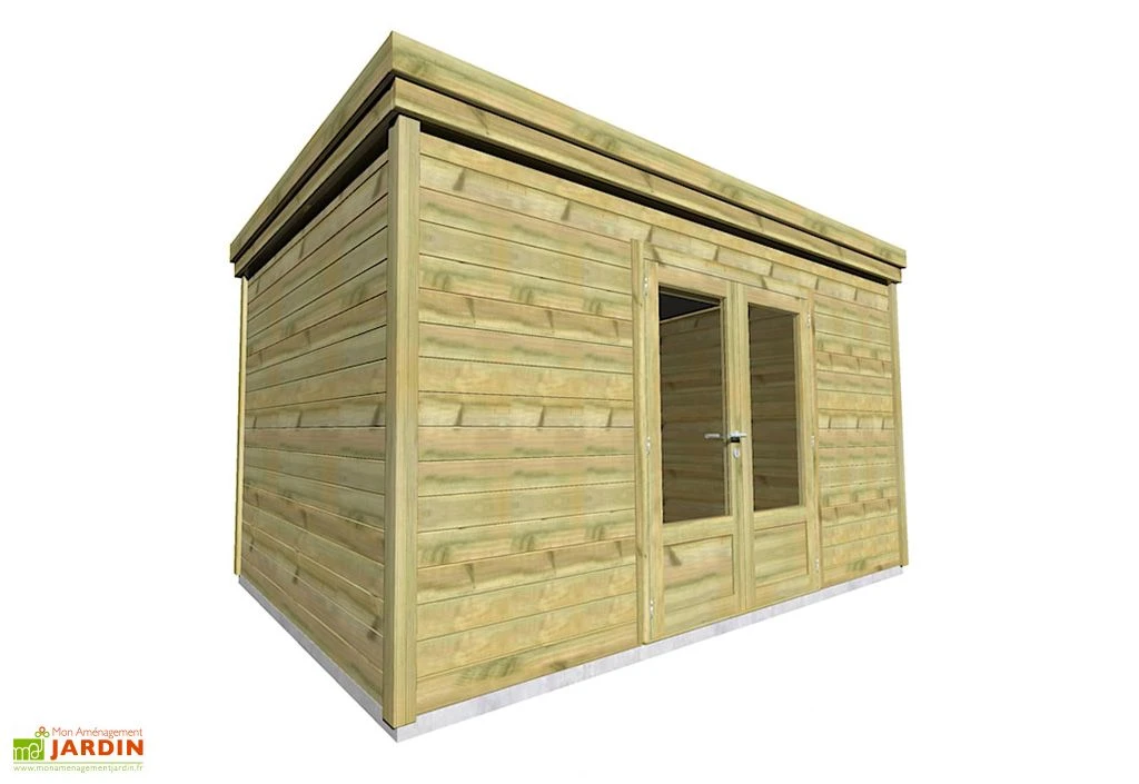 La toiture plate de cette remise de jardin s’est vue dotée d’une charpente traitée autoclave et d’une couverture en bac acier 65/100 ondulé chargée de garantir la bonne étanchéité de l’ensemble de l’abri. Sa légère inclinaison de 5° lui permettra en outre d’assurer l’écoulement efficace de l’eau de pluie en cas d’averse. Aucun risque d’infiltration par le toit ! Notez qu’afin de bien l’isoler des remontées d’humidité provenant du sol, il est recommandé d’installer cet abri sur une dalle de béton.