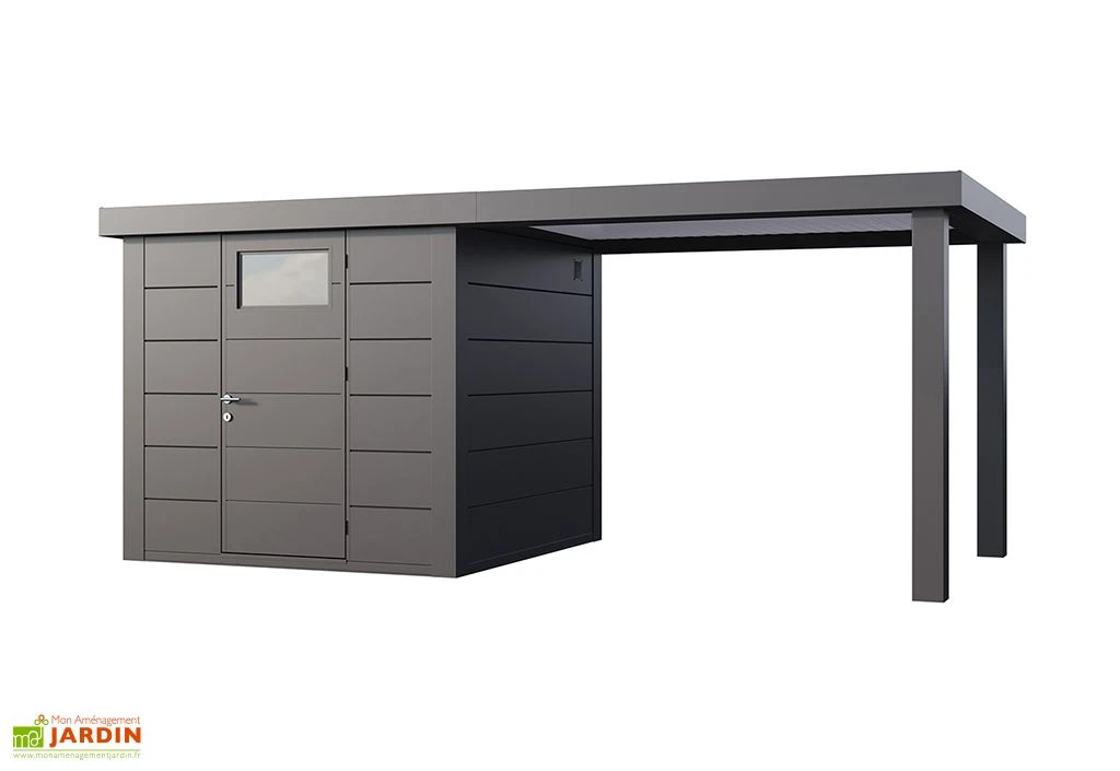 L’abri de jardin Open Lounge de la marque Telluria est idéal pour aménager un espace de rangement, mais également de détente en plein cœur de votre jardin. Il est en effet composé d’un cabanon de 5,7 m² dans lequel vous pourrez ranger du matériel de jardinage, des outils ou entreposer du mobilier de jardin une fois l’hiver venu, et d’un auvent de 6,8 m² sous lequel installer un salon de jardin ou qui pourra faire office d’abri à vélos, par exemple.