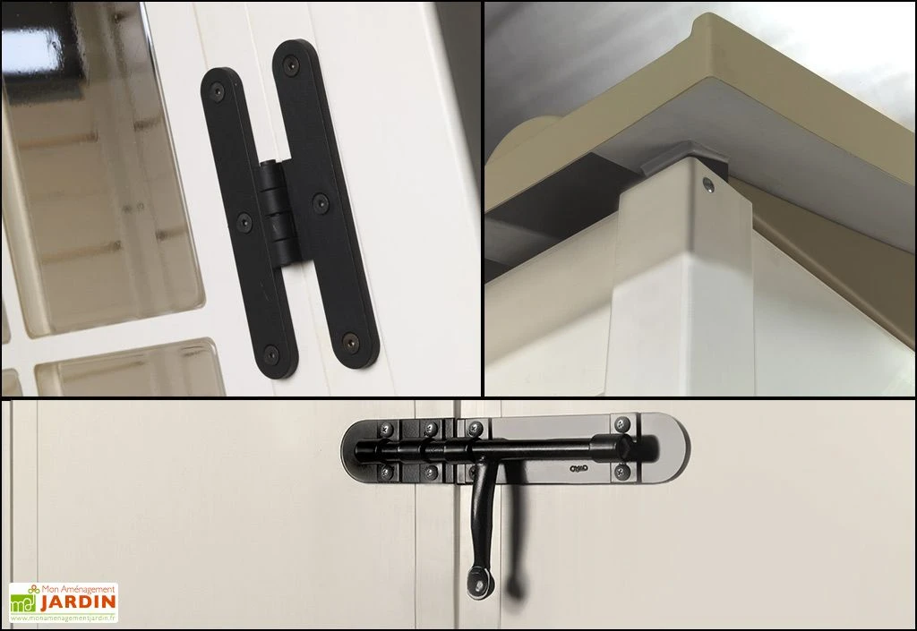 DotĂ© d’une double porte avec vitrages en PVC ainsi que d’une partie vitrĂ©e situĂ©e en haut de la façade, cet abri est plutĂ´t lumineux. Cette porte de 98,4 x 173 cm permet d’accĂ©der facilement Ă l’intĂ©rieur de l’abri. Un plancher en bois composite de 45 mm est Ă©galement inclus. Le tout Ă©tant livrĂ© en kit, vous devrez procĂ©der au montage de cet abri vous-mĂŞme. Une notice dĂ©taillĂ©e en français vous sera fournie.