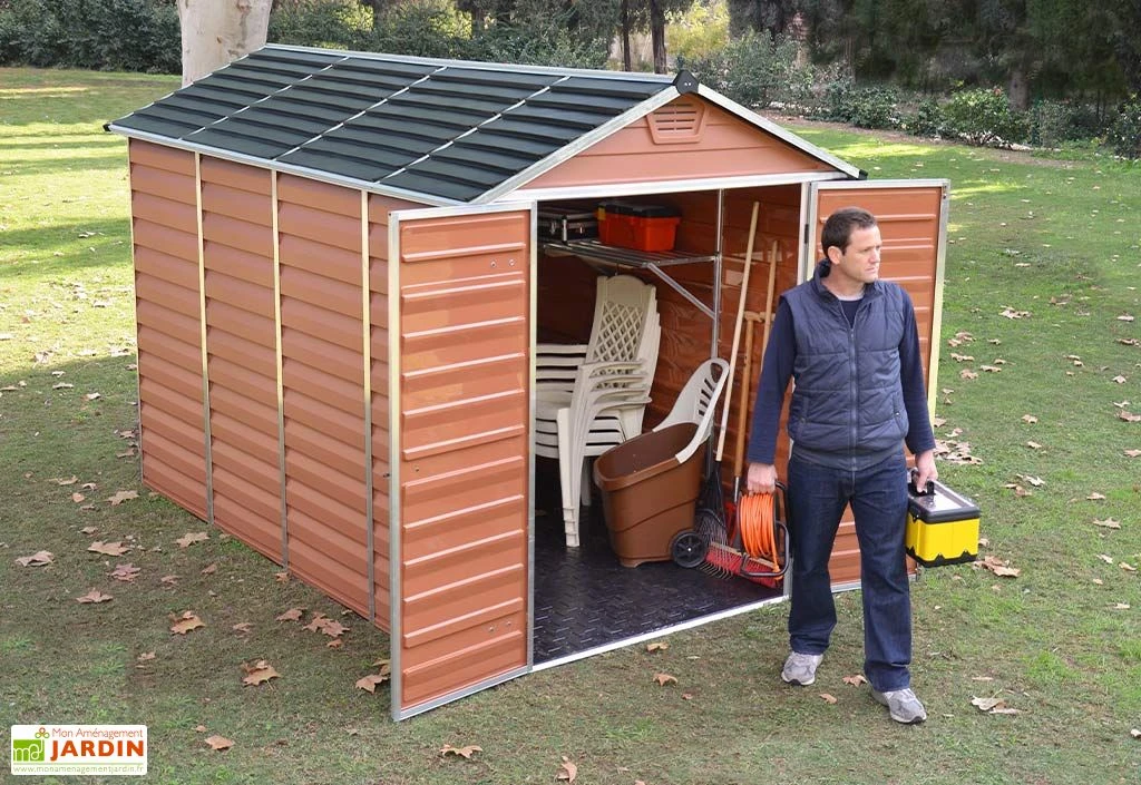 Votre abri de jardin Skylight en polycarbonate de chez Palram-Canopia facilite le stockage de vos outils d’extérieur. Ses parois en polycarbonate très résistantes aux intempéries et aux UV sont renforcées par des profilés en aluminium. Le toit de votre abri laisse passer la lumière extérieure et vous permet ainsi de voir à l’intérieur du cabanon sans lumière artificielle.