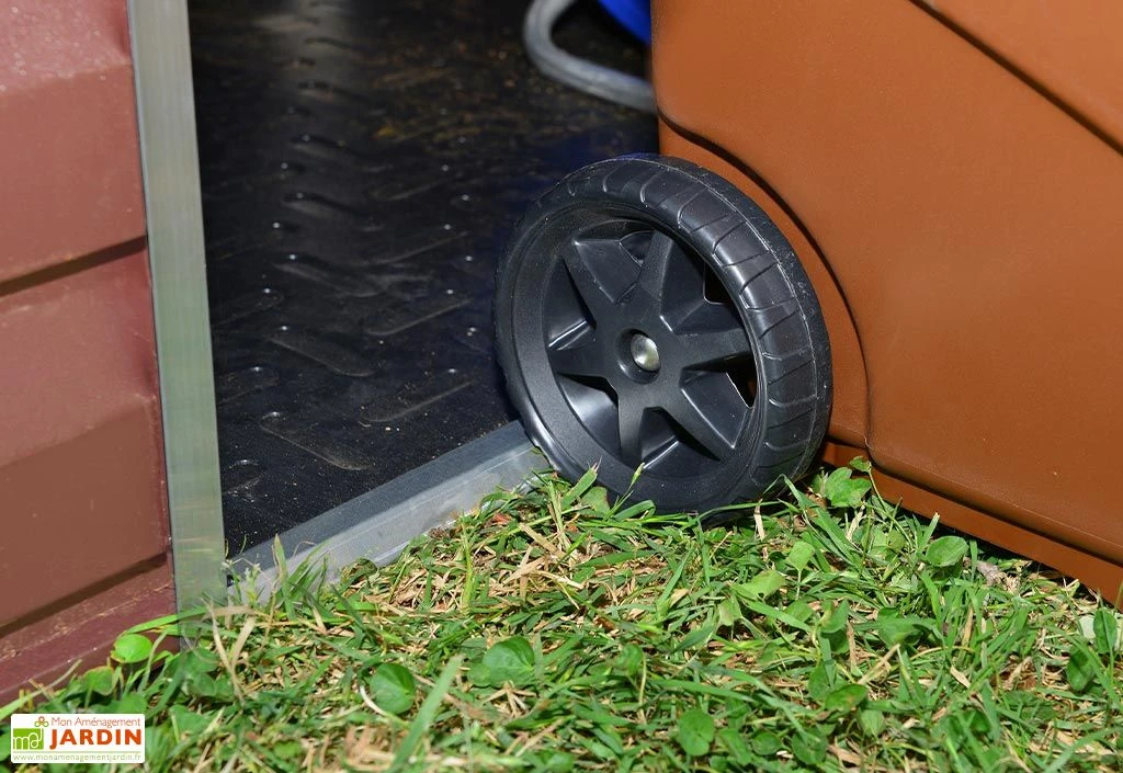 Votre abri en polycarbonate Skylight est équipé d’un plancher antidérapant. La porte, entouré d’un cadre en aluminium, peut être fermée par un cadenas (non fourni) grâce au loquet présent sur le cadre. La double porte mesure 1,27 x 1,71 m (l,h).
