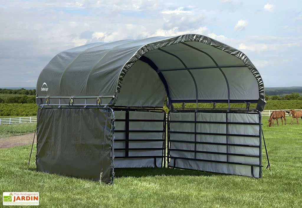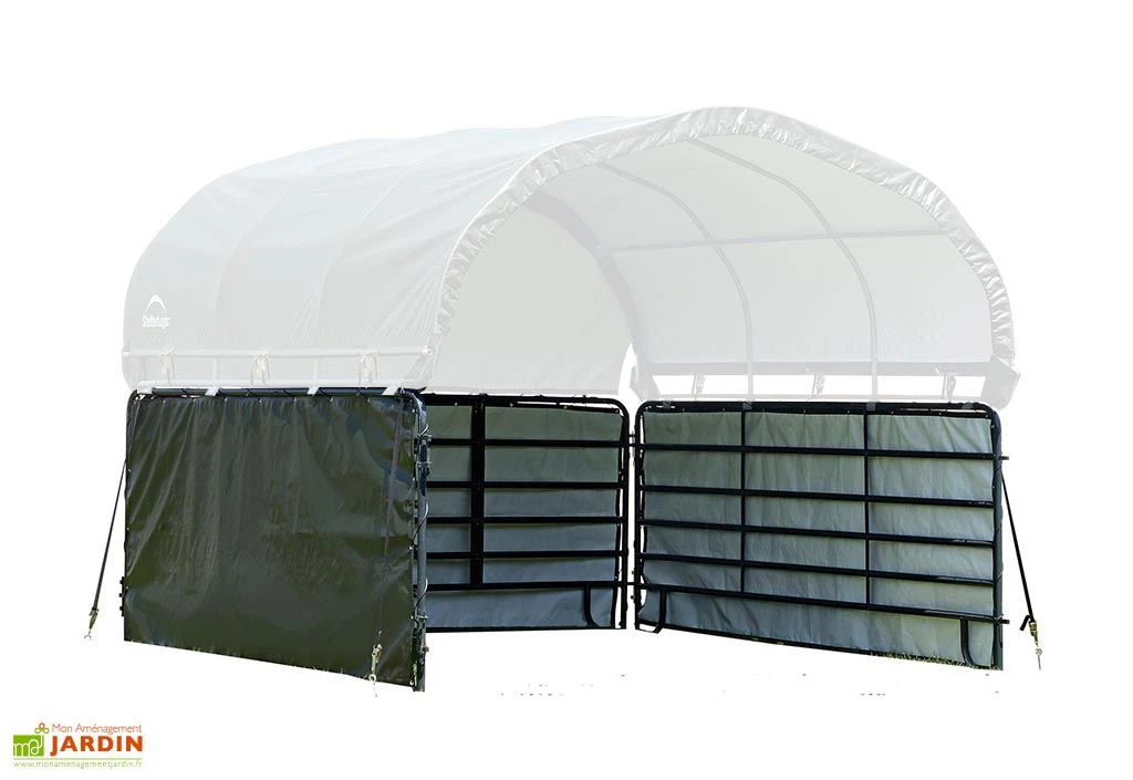 Les parois de l’enclos et la toiture présentes sur les photos ne le sont qu’à des fins d’illustrations. La toiture souple est disponible séparément dans l’onglet « Accessoires ».