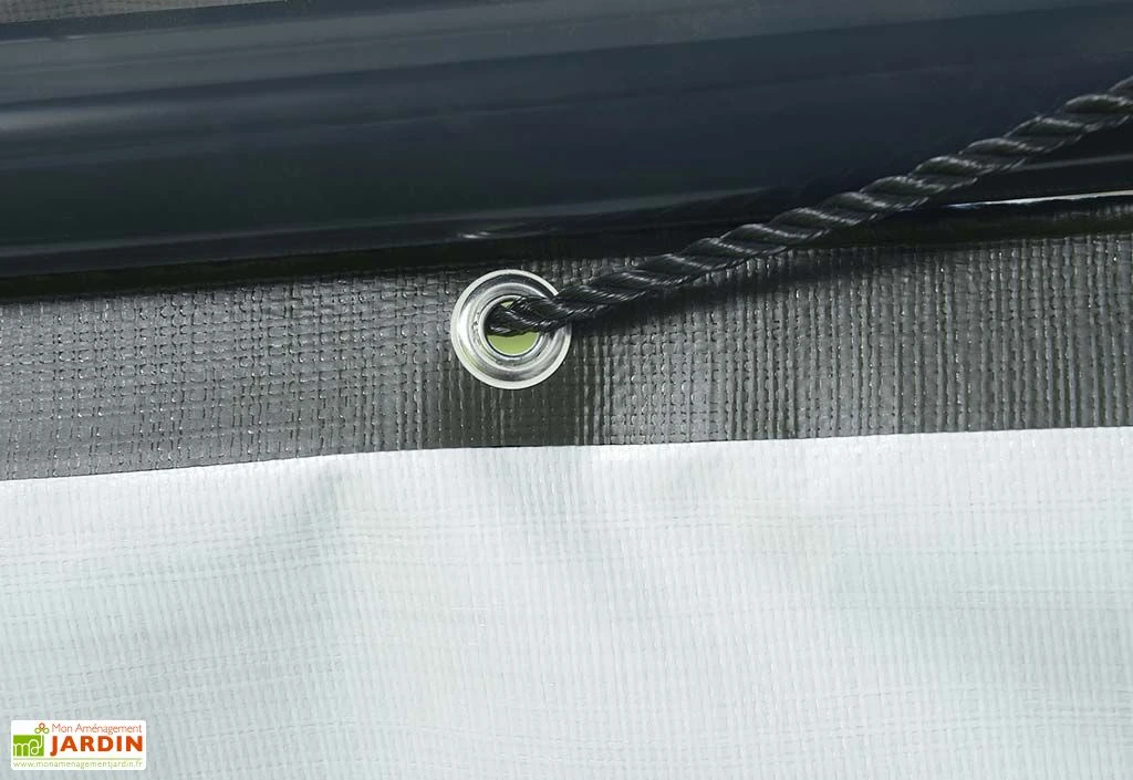 Chacune de ces bâches latérales mesure 370 cm de long sur 170 cm de haut. Elles sont fabriquées en polyéthylène tissé triple épaisseur, un matériau robuste qui ne craint ni l’humidité, ni les rayons UV. Le tout se montrera donc parfaitement étanche et conservera sa couleur verte pendant de longues années sans décolorer. Notez enfin que ces bâches sont livrées accompagnées de cordes et de sangles de fixation.