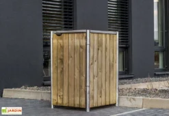 Cache-poubelle Simple En Acier Et Bois De Pin Traité 60 X 63 X 115 Cm