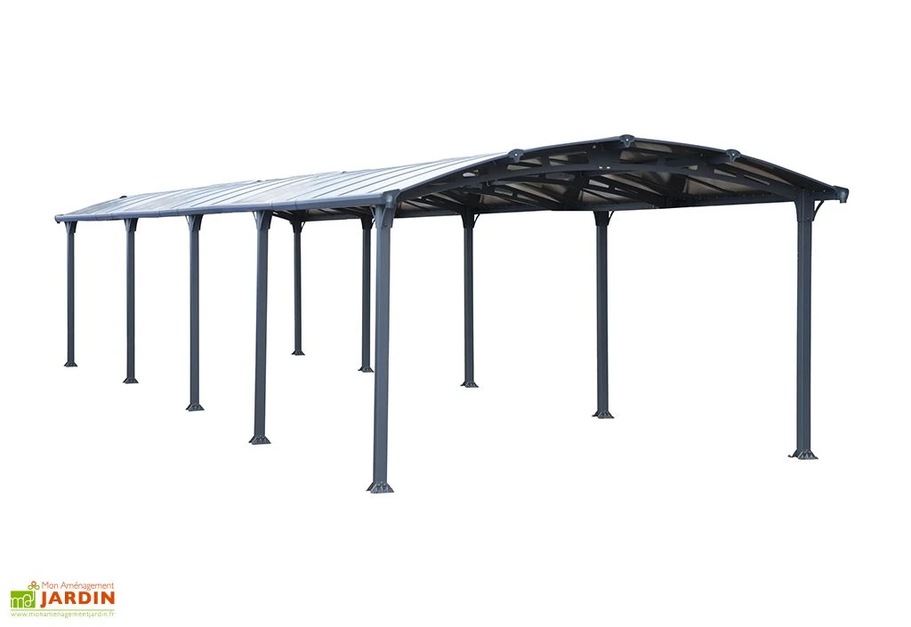 Le carport Arcadia 10600 de chez Palram-Canopia offre suffisamment d’espace pour protĂ©ger deux Ă trois voitures des intempĂ©ries, mais Ă©galement d’une surexposition au soleil et Ă ses rayons. Il affiche en effet des dimensions de 3,59 x 10,72 m, pour 2,19 m de haut, et couvre une surface de 38,5 m². Ce carport Ă©tant livrĂ© en kit, son montage devra ĂŞtre rĂ©alisĂ© par vos soins.Â