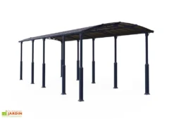 Composé d’une structure en aluminium gris anthracite RAL 7016 avec raccords en acier galvanisé et d’une couverture en polycarbonate, ce grand carport est conçu pour résister à des vents pouvant atteindre les 120 km/h. Les panneaux de 6 mm d’épaisseur qui composent sa toiture sont également très résistants et filtrent les rayons UV sans jamais jaunir.