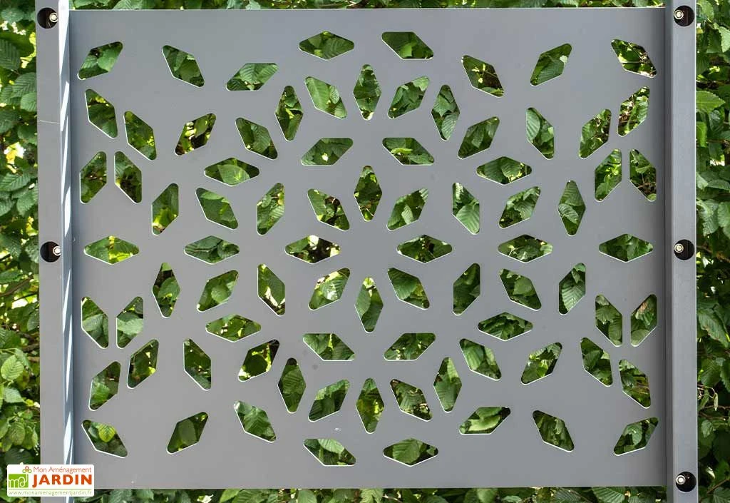 Le carport Libeccio signé Trigano dispose d’une structure en aluminium finition gris anthracite. Cette élégante finition, associée aux cinq claustras en acier également inclus, lui permettront de s’intégrer aisément dans n’importe quel style d’extérieur. Outre leurs qualités esthétiques, ces brise-vues de 79 x 214 cm apportent une protection supplémentaire contre les rayons du soleil et jouent le rôle de paravent (l’ensemble du carport pourra résister à des vents atteignant les 150 km/h). Ils pourront être agencés selon vos envies et vos besoins, leur assemblage étant totalement modulable.