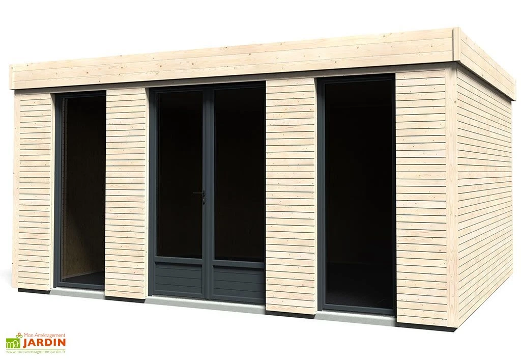L’abri de jardin en bois Décor Home mesure 330 x 462 x 249 cm (l,l,h) soit une surface intérieure de 15,24 m². Il est constitué de panneaux d’une épaisseur de 90 mm avec un bardage en sapin du nord. Le bois n’est pas traité, vous pouvez le personnaliser avec la peinture de votre choix.
