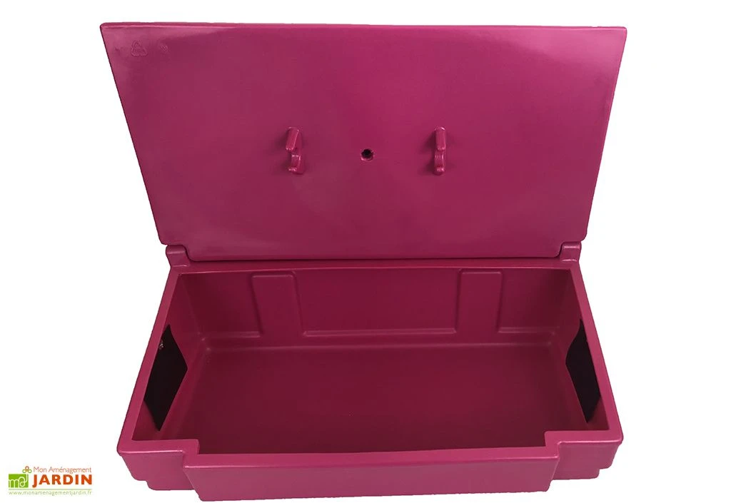 Le coffre de rangement dispose de clips intégrés sous le couvercle offrant un espace supplémentaire pour fixer un petit outil comme une pelle ou un râteau.