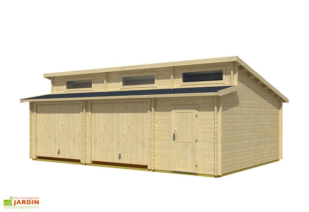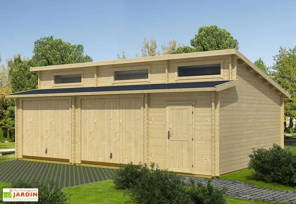 Garage En Bois D’Épicéa Brut Avec Portes Basculantes Hawaii 39 M²