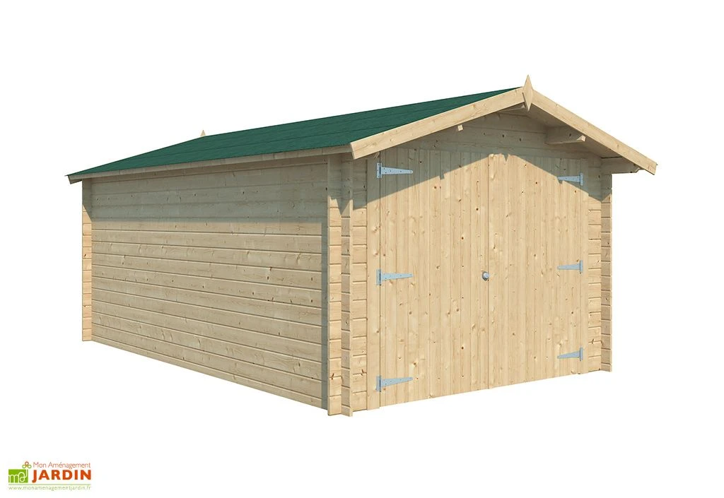 Fabriqué en bois brut, ce garage de jardin n’est donc pas protégé contre les intempéries et les insectes qui pourraient le détériorer. Vous devrez alors traiter le bois vous-même ou opter pour le traitement par autoclave proposé en option (voir plus bas). Avec des dimensions intérieures de 2,94 x 4,79 m, ce garage offre un espace de 14 m², soit suffisamment de place pour stationner une voiture ou certains petits utilitaires.