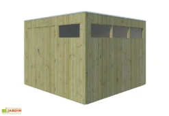 Garage En Bois D’Épicéa Toit Plat Bac Acier 16 M²