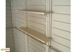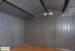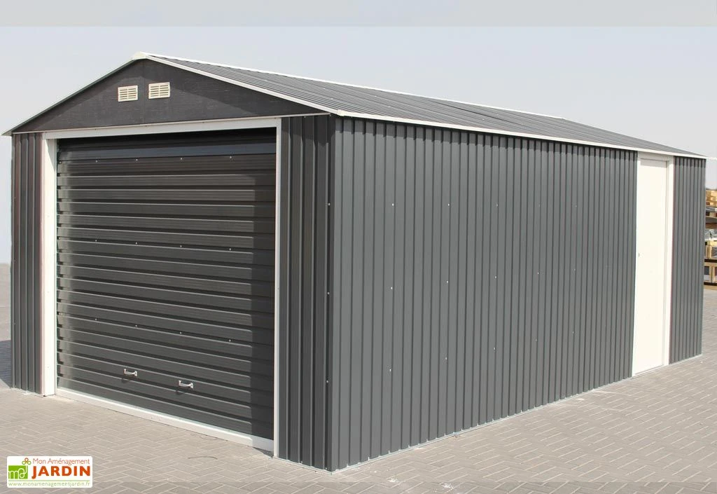 Ce garage Duramax possède une grande surface de près de 20 m² grâce à des dimensions hors tout de 3,50 x 5,70 x 2,60 m (l,l,h). La hauteur de ses murs de 2,10 m et sa grande capacité permet d’y faire entrer tout type de véhicules avec une remorque.