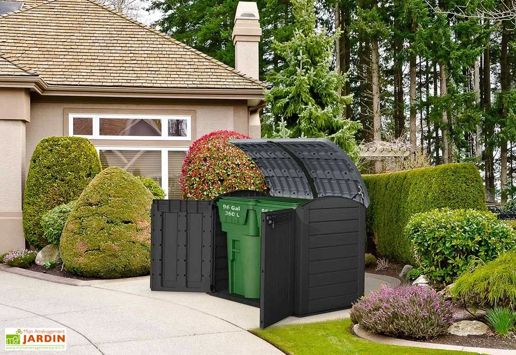 Ce coffre de jardin multifonctions de la marque Keter offre une capacité de stockage de 2000 L. Il affiche en effet des dimensions intérieures de 164 x 97 x 127 cm tout en n’occupant que 2 m² dans votre jardin. Sa double porte de 151,5 x 127 cm et son couvercle monté sur vérins vous permettront de stocker en toute simplicité des équipements relativement encombrants comme du matériel de jardinage, un système de filtration pour piscine ou encore des vélos, par exemple. Notez que ce coffre d’extérieur pourra également faire office de cache poubelle.