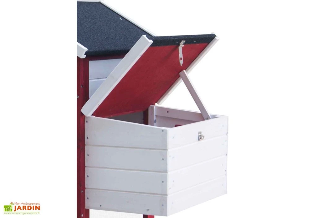 Le poulailler en bois rouge et blanc non traité de chez Habrita est composé de trois parties :