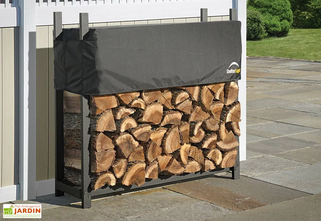 Le range-bûche dispose de pieds qui permettent de surélever légèrement le bûcher et ainsi éviter tout contact entre le sol et le bois. La forme du cadre permet également l’aération du bois évitant ainsi l’humidité qui risquerait de faire moisir le bois. La protection du bois est également assurée par une bâche en polyester 300D qui s’ajuste parfaitement sur la structure.